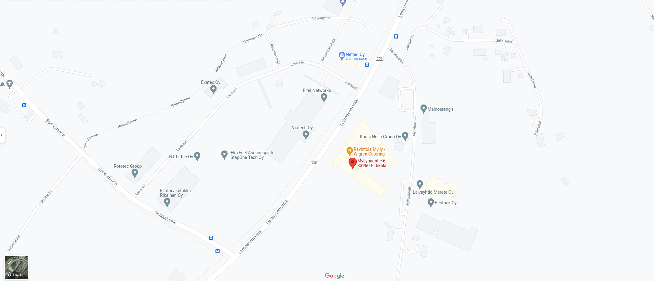 Toimitilamme sijaitsevat hyvien yhteyksien varrella Pirkkalassa, lähellä Tampere-Pirkkalan lentoasemaa.